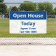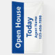 This real estate open house banner has display text says "Open House Today" but you can change the wording as needed. At the bottom, there's a place to add the real estate agent's name and phone number. The top portion is blue. The rest of the banner is white. All text can be edited or deleted.