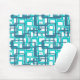 This mouse pad has a mid-century modern design of open rectangles in blue over open rectangles in robin's egg blue.