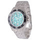 This men's watch has a mid-century modern design of open rectangles in blue over open rectangles in robin's egg blue.