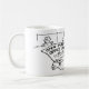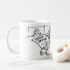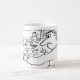 Man looking at a map of an open-plan office. Funny office cartoon on a mug.