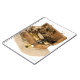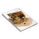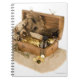 Open replica of treasure chest on sand notebook