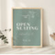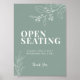 Open Seating sign are characterized by a boho style with floral artwork and sage green colors.