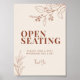 Open Seating sign are characterized by a boho style with floral artwork and neutral earthy and beige colors.
