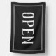 Modern minimalist weatherproof "open" sign with stylish typography on a black background for a business. Perfect to let customers know when your business is open. Great for small businesses, bakery, salon, cafe, restaurant, shop, boutique.