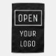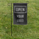 Open sign flag. Simple white on black with a frame. Upload your custom logo.