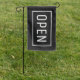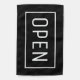 Open sign flag. Simple white on black with a frame.