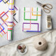 This colorful wrapping paper is lots of fun. It is covered with a variety of open squares. Good for any occasion.