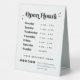 Display your store's business hours with our acrylic table tent display sign featuring trendy vintage style text with a celestial design.