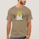 My 11 yo wore adult XL (5’7” 165#). The 8yo is small framed. She wore adult small and tied it in the back. Grandma wore adult large with long sleeve shirt underneath. Tall girl adult medium. Dark haired male adult large. Good quality dark Heather gray, Gildan brand shirt. -it was next up from basic choice and cost about $20 per shirt. Not too thick or thin. Washed and dried well, no major shrinkage. Not see-through. Can wear a bra under it fine. Screen print is just as shown and well done, front and back.
