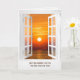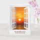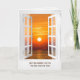 open white window with sheer curtains and sunrise scene over water for sympathy