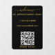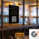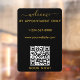 A black and gold opening business hours window decal and window cling featuring business logo, QR Code, your custom and contact details. A personalized welcome sign shop hours by appointment only window cling perfect for shop windows and front door signs. Perfect for a business shop owner who would like to notify their customers about its opening hours.