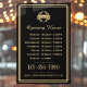 Display your business hours to clients and customers with this stylish window cling. A vintage-inspired design featuring classic typography and a simple art deco border. This professional template is personalized with your company logo, opening times, telephone number, and website. It offers fully customizable text to fit your business brand. You can also change the background color by using the design editor tool. This adaptable design is ideal for a variety of establishments, stores, offices or services, including restaurants, cafes, salons, boutiques, dry cleaning services, and more! Printed colors: black and gold color. If you’d like your logo to coordinate with the gold type color, the Hex color code is #DEBE79