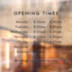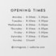 A simple custom business opening hours vinyl window cling decal sign template in a modern minimalist style on a transparent background. This versatile template allows you to easily design a custom opening times list for your store, salon, restaurant, cafe or any other business. Need help? Feel free to contact me using the message button. I am happy to help with your personalization, additional items or custom orders.