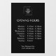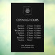 Keep your customers informed with this sleek black business hours window cling. Customizable with your logo, it’s perfect for shops, cafes, salons, and offices. Durable, easy to apply, and professional—an ideal way to display your opening and closing times on any storefront.
