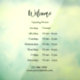 This business sign has a template you can edit to show your hours of operation. Welcome is in an elegant black script at the top of the sign. All text can be edited or deleted. The sign has a transparent background.