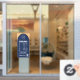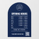 Opening Times With Qr Code Logo And Navy Blue Arch Window Cling