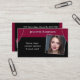 An elegant business card for opera singers, classical vocalists, musical theater performers and music tutors, in sleek black with deep red stage curtains effect. The front can be personalized with your name, photo and occupation, while the back features a QR code for you to direct to your own website, as well as space for more information and your contact details.
