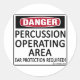 Danger, Percussion Operating Area! Ear Protection Required! This is fair warning to anyone around the percussionists. See all our musical designs on on cups, mugs, tee shirts, sweatshirts, hats, and other gifts and clothing.