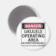 Danger, Ukulele Operating Area! Ear Protection Required! This is fair warning to anyone around musical instruments. See all our musical designs on on cups, mugs, tee shirts, sweatshirts, hats, and other gifts and clothing.