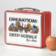 This is a standard metal lunchbox that appears to work just fine. We designed this box ourselves with an uploaded photo and custom text on the front and back. It looks absolutely beautiful except the front of the lunchbox is not centered like it shows in the photo. The print borders don't align with the inset flat part of the box where the preview photo online showed it perfectly centered in there. The back looks nice and centered though.