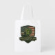 I own a lot of reusable grocery bags, but this one holds its box shape and simply stands up on its own even if there is nothing in it. Its stiffer than your regular reusable bag too, and the material is water resistant. I poured water on the exterior and it didn't penetrate inside to the other side. I'm buying a couple more. Wish I knew how durable these bags were or I would have purchased a few more with my initial order. I also like how it folds and buttons up when not in use, making it easy to put into a handbag or luggage. I haven't used this bag yet, as I purchased it for travel use, like when you're at the airport and need to small sturdy bag to place any airport purchases in, like food, souvenirs etc. I can tell you when you first see this bag, it looks very cheap, but after closer inspection of the material and the seams its a very sturdy reusable bag. I tested it out by putting some really heavy objects inside and I could not observe any stress to the bag at all. Another thing I like about it, is the fact the medium size that this is makes it easy to just carry it in your hand without the bottom of the bag scraping the ground, like most other bags do when you're short. That alone, deserves 5 stars. I just wish there were more colors to choose from! The PDX Airport Carpet printing looks just like the photo, and using this bag during travel might be a conversation piece when/if a native from Oregon happens to see it.