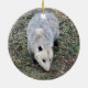 Lightweight, smooth, pure white ornament with nice sheen. Perfect size to be seen from across the room ... and to attract closer inspection! Price was great for ordering enough for the whole family! Clear, bold black design just as requested. Matches the order exactly. Just so nice!