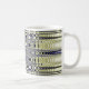 Abstract fractal art that reminds me of optical illusions. This unique mug features circles and waves in white, blue and khaki.