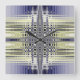 Symmetrical abstract fractal art that reminds me of optical illusions. This unique square clock features circles and waves in white, blue and khaki. Without numerals!