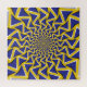 Optical motion illusion: Blue arrows spinning on yellow.