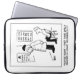 Optician laptop cover sleeve. The cartoon illustration shows an optician giving a customer an eye-test. Following a remark from the customer, the optician checks the spelling in the small-print on his eye-test chart and tells patient, "You're right - they have spelt 'Printed in China' incorrectly".