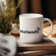 Enjoy your favorite beverage with a touch of class in this elegant bone china mug. The minimalist design features a sharp soccer player silhouette and bold "Holland!" typography on a crisp white finish. Personalize it with your name and jersey number to create a sophisticated, custom piece of fan gear that is perfect for any Dutch football enthusiast.