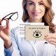 Doctor of Optometry business cards template in a minimalist design with an eye symbol and the name of your Optometry service featured on the front. Replace the text on the back with your Optometrist name and office contact information.