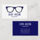 Optometrist Eye Doctor Glasses Rustic Kraft Business Card. This elegant business card featuring modern typography on a white background. You can add your name and contact details to make a lasting first impression. You an add your text and company information on these template ready business cards. It is a simple but modern design. A white background with a pair of blue glasses in the center of the card. All information is on the back. The background color can be changed.