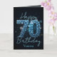 Celebrate 70 incredible years with this stunning customizable birthday card. The front features a bold “70” adorned with radiant blue gemstones, symbolizing strength and wisdom. Elegant script adds a personalized touch, standing out beautifully against a rich, deep-toned background that enhances the sparkle.