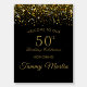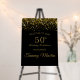 This is a black and gold-themed welcome sign for a 50th birthday celebration. It features a sparkling gold confetti design at the top, opulent gold text, and personalized details. The sign gives a formal yet festive impression. Customization available!