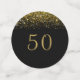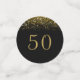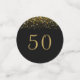 This is a black and gold-themed table confetti for a 50th birthday celebration. It features a sparkling gold confetti design at the top, opulent gold text, and personalized details. The confetti give a formal yet festive impression. Customization available!