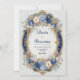 Experience the ultimate in regal romance with this breathtaking wedding invitation design, where luxurious Victorian elegance meets dramatic floral artistry. The centerpiece is a spectacular ornate oval frame that perfectly mimics an antique gold mirror or picture frame, complete with intricate Baroque scrolling and a brilliant, almost metallic finish. This opulent border is dramatically set against a textured, deep royal navy blue background, giving the frame the appearance of being surrounded by rich velvet. The entire oval is enveloped in a lavish floral wreath featuring highly detailed, hand-painted blooms. Prominent dusty blue and rich sapphire flowers are accented by soft blush pink and hints of deep red, creating a stunning and sophisticated color palette. Subtle foliage and delicate golden leaves weave through the arrangement, emphasizing the design's vintage glamour and painterly quality. This invitation is the ideal choice for couples planning a formal estate wedding, an elegant garden ceremony, a Renaissance theme, or any event demanding an atmosphere of grand, old-world sophistication. This truly unique and romantic design is also perfectly suited for a Quinceañera celebration, a milestone anniversary dinner, or a lavish bridal shower. Its versatile use for other businesses, events, or situations makes it an exceptional choice for any occasion demanding an air of unmatched luxury and historical artistry.