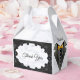 Chic white marble frames with Onyx Black marble looking texture and spheres thank you favor box