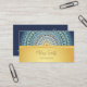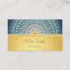 The top portion features a gold blue modern geometric mandala. The bottom portion features a faux gold foil text field with a custom name in an elegant calligraphic handwritten script. Perfect for yoga teachers, make up artists, salon, boutique, spa and massage, massage teachers...
