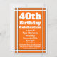 Orange 40th Birthday Invitation