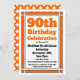 Plain white envelopes are included with paper invitations and will come to fit the invitation size you select. If you don’t need the envelopes, you may choose to not receive them by selecting the dropdown below "Envelopes" and choosing "None." If you’d like to have a design on your envelopes, you can browse all of these available envelopes to find the design that complements your Orange 90th Birthday Invitation.