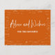 Modern orange graduation advice and wishes for the graduate card with a beautiful calligraphy script font and a background of mathematical formulas and equations. Let the guests write and sign their words of wisdom at the back of the card and make the graduation party memorable forever. Illustrated and designed by Patricia Alvarez.