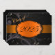 Orange and black graduation invitation with light and dark orange floral and a orange ribbon going across showing the year of graduation. The back of the card is black with light orange font for people to fill in the graduation announcements.