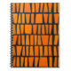 A cool and funky orange and black african tribal pattern. Orange oddly shaped rectangles and squares with a pottery texture on a black background. Could also be seen as an old bookcase pattern.