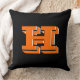 Orange and Black College Block Font Initial Throw Pillow