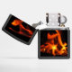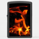This cool Zippo Lighter displays the energy of fire. The orange, gold and yellow flames appear as a joyful dancing character set off by a black background.