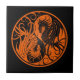 Orange and Black Flying Yin Yang Dragons Tile