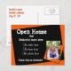 Orange and black open house invitation postcard