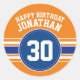 Orange and Blue - This masculine design includes jersey stripes and team colors. The lean, modern look is perfect for any athlete celebrating a birthday. The general sports theme can be used for any lover of hockey, football, soccer or baseball. You change the numbers to your a special age for a birthday celebration.