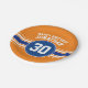 Orange and Blue - This masculine design includes jersey stripes and team colors. The lean, modern look is perfect for any athlete celebrating a birthday. The general sports theme can be used for any lover of hockey, football, soccer or baseball. You change the numbers to your a special age for a birthday celebration.